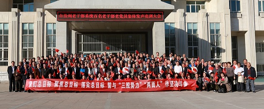 9月25日,昌吉州党委老干部局按照自治区和昌吉州党委关于深入开展发声亮剑活动的部署要求,结合深化老干部“畅谈十八大以来变化、展望十九大胜利召开”主题正能量活动,紧紧围绕推进实现社会稳定和长治久安总目标,组织州本级、各县市老同志,州县两级老干部工作者代表和部分基层社区党员干部共350余人,隆重召开“老干部系统集体发声亮剑大会”。