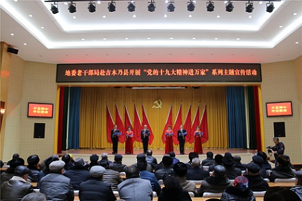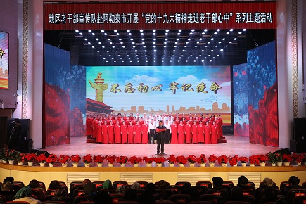 12月3日至8日,阿勒泰地委专门安排地委组织部、老干部局牵头,择优遴选18名基层老干部组成“老干部宣讲队”,深入所辖七个县(市)、乡村、社区、家庭开展“党的十九大精神进万家”系列主题活动,推动党的十九大精神走进老干部心中。