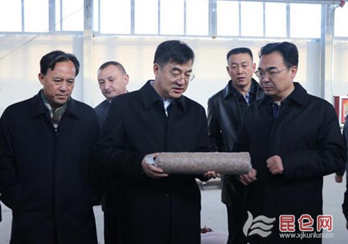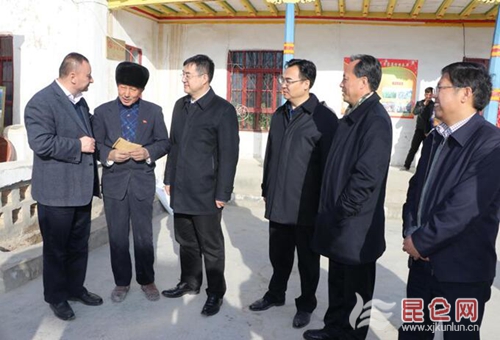 在托万克麦盖提村,刘见明部长认真听取了工作队在学习宣传贯彻党的十九大精神、维护社会稳定、推进脱贫攻坚、建强基层组织、做好群众工作等方面的工作汇报;现场考察了村委会办公室、村民活动中心、“爱心超市”、便民巴扎等村级阵地建设和功能发挥情况;详细了解了黑木耳菌棒加工厂、核桃深加工厂和黑木耳种植示范园等积极推进产业扶贫方面的措施。深入2户贫困户家中实地察看了黑木耳的种植和增收情况,表示黑木耳项目看的准,希望加大推广力度,将来辐射到农一师四团,带动更多的农民增收致富。