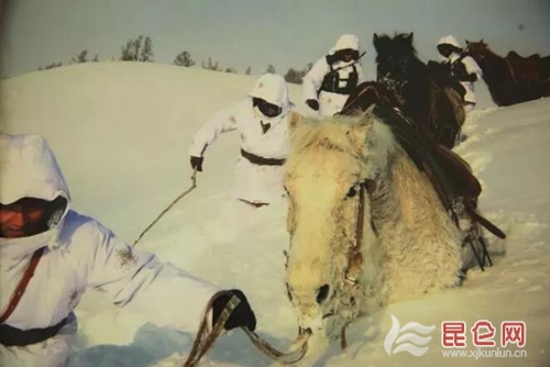 边防哨所的党员踏着厚厚的积雪前往牧民家送惠民政策
