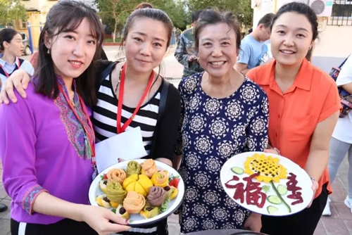 馕包肉、大盘鸡、薄皮包子、手抓饭、清汤羊肉、炒鸡蛋、韭菜饺子、担担面……一道道美食让活动百味飘香。大家一边品着美食,一边欣赏歌舞,亲密交流。