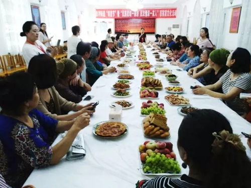 辖区居民及结对亲戚端来精心烹制的拿手菜,特色抓饭、中华大家庭烤面包、手工馍馍、特色小炒等菜品让人垂涎三尺。