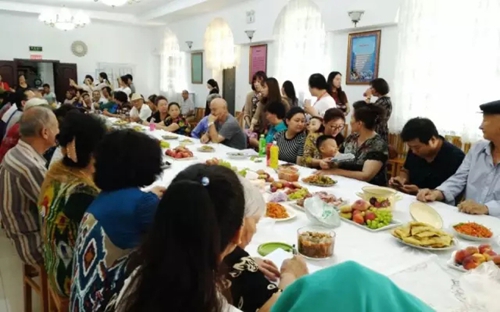 我给你戴上小花帽,你为我围上艾德莱斯绸丝巾,大家共同跳起麦西来甫,从邻里变“亲戚”,吃在一起,乐在一起!