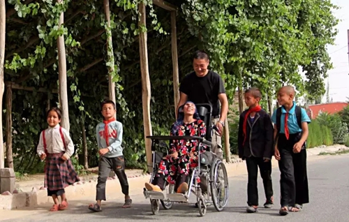 四月的一天,一条由工作队发起的爱心传递信息在新疆电视台职工微信圈里传开,“求助一辆轮椅,帮助一名无法行走的女孩重新行在阳光里”。10分钟后,新疆电视台汉语综艺频道全体职工承接下了这次爱心援助;2个小时后,一辆全新的轮椅被送往机场,当晚抵达和田,次日中午便送至兰干村。