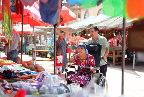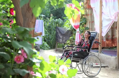 布威阿西靠在轮椅上,阳光伴着“阳光”......(新疆电视台驻皮山县木吉镇兰干村工作队 汤飞雪、张强 供稿)