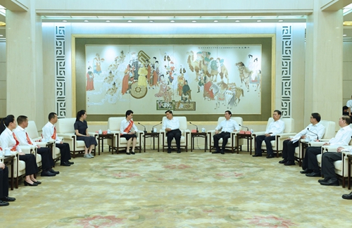 廖俊波同志先进事迹报告会21日上午在人民大会堂举行。报告会前,中共中央政治局常委、中央书记处书记刘云山会见了报告团成员,代表习近平总书记,代表党中央,向廖俊波同志家属表示亲切慰问,并颁发党中央追授廖俊波同志“全国优秀共产党员”证书、奖章。